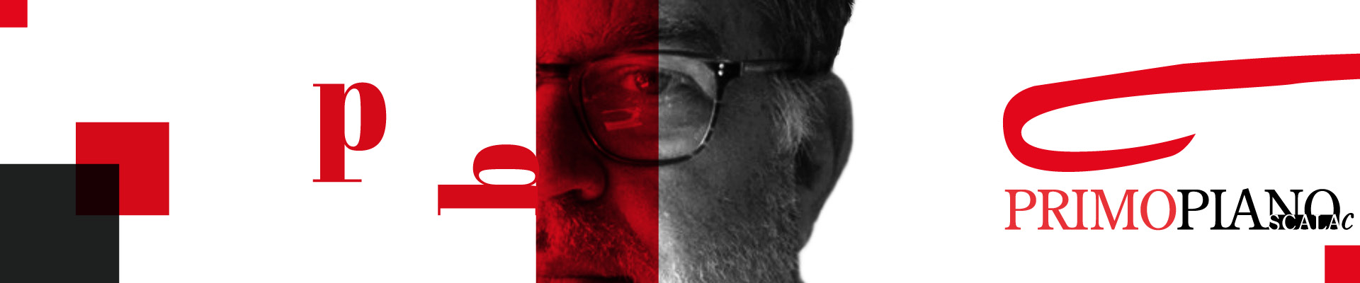 With Bernard the new 2025 cover graphics for PRIMOPIANOSCALAc goes on. We decided to go back to Telos A&S’s traditional colours: red, black and white. The identity of our guests is revealed partially by their face and partially by a quote from their interview. Their name is written in Abril Fatface, an elegant font inspired by 19th-century European advertising posters. We hope you like it!
