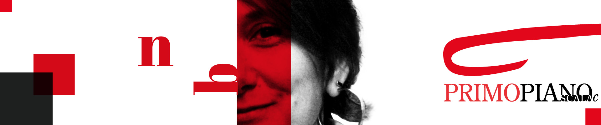 Even in April we remain faithful to PRIMOPIANOSCALAc’s new 2025 cover graphics in Telos A&S’s traditional colours: red, black and white. We reveal our guests’ identity by showing half of their face on one side and a quote from the interview on the other. Their name is written in Abil Fatface, a classy font inspired by 19th-century European advertising posters.