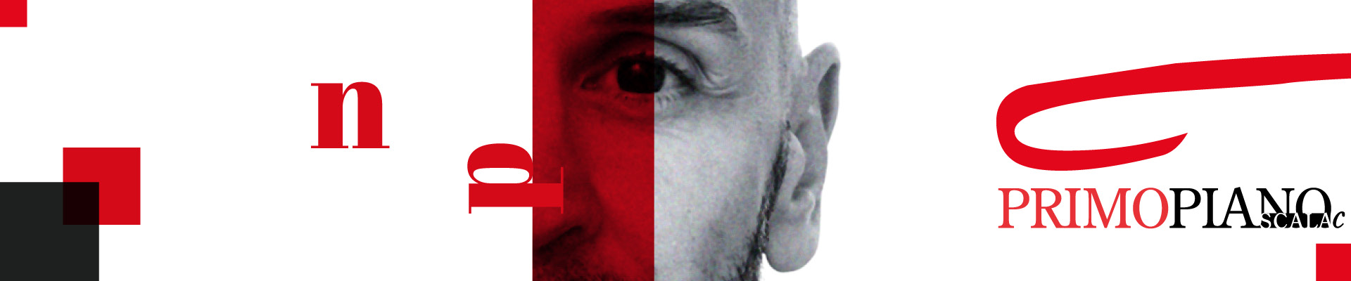 Red, black and white, these are the traditional colors of Telos A&S that you will find in the 2025 cover graphics of PRIMOPIANOSCALAc. We reveal our guest’s identity by showing half of their face on one side and a quote from the interview on the other. Their name is written in Abril Fatface, a classy font inspired by 19th-century European advertising posters.