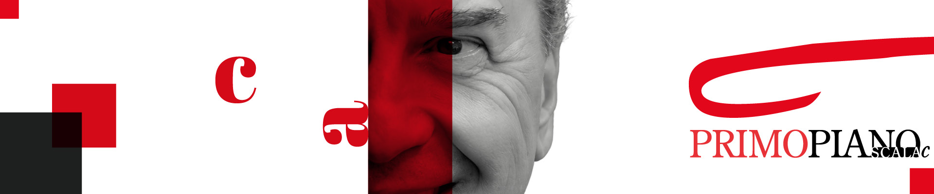 Red, black and white: the traditional colours of Telos Analisi & Strategie are back in the 2025 cover graphics of PRIMOPIANOSCALAc. We reveal our guest’s identity by showing half of their face on one side and a quote from the interview on the other. Their name is written in Abril Fatface, a classy font inspired by 19th-century European advertising posters.